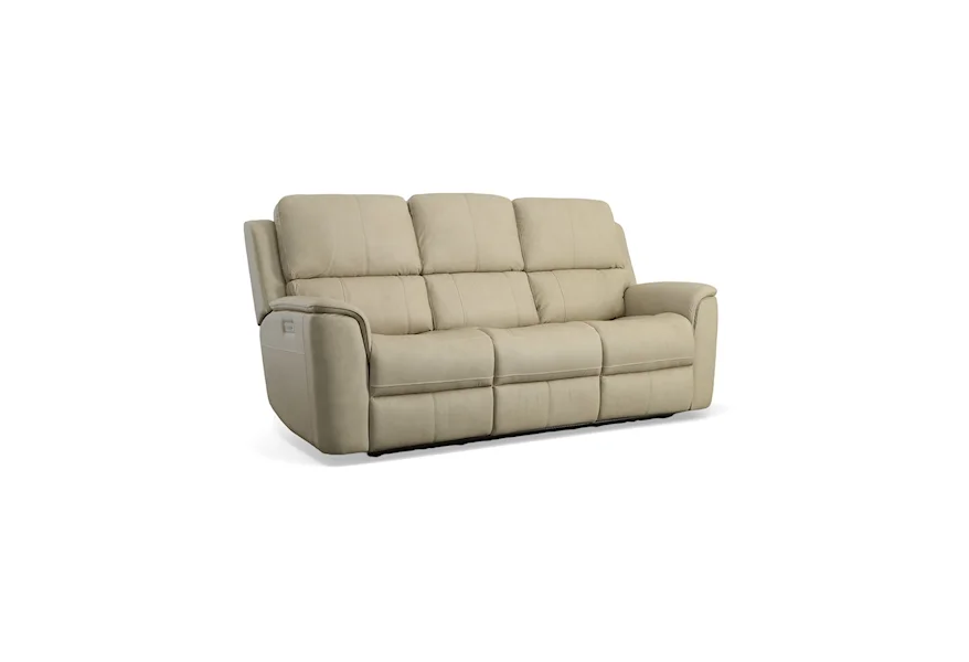 Get ready to relax in this casual power reclining sofa. This sofa is full of form and function. Power reclining features allow you to recline to any position with ease, as well as adjust your head and lumbar support to positions that best suit your needs. included USB ports make it easy to power up your hand held devices and stay connected.