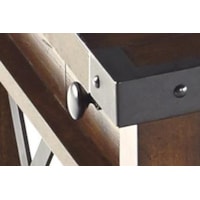 Enhance your living room with the warmth of this Tuscan style collection of occasional tables. Cool metal accents and hardware complement the charming dark ash finish and add a touch of edgy, industrial artistry. Table tops mimic planked wood while X-shaped metal motifs decorate the sides. Each piece has a flat base, slightly raised on block feet, that double as a shelf to display decorative vases, photo albums and other treasured items.