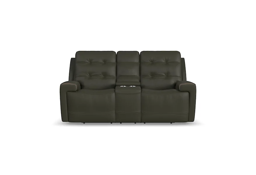 The Iris Casual Power Reclining Console Loveseat with Power Headrests and USB Charging, made by Flexsteel,