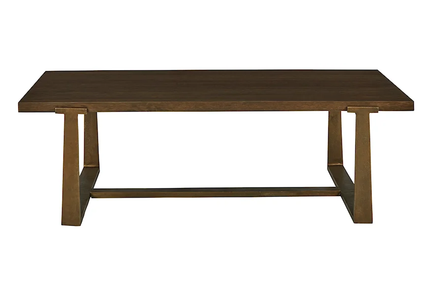 Chic and sleek, this coffee table satisfies your taste for contemporary design. Its warm brown top is neutral and refined, while the antiqued goldtone base adds textural character. Place your favorite decorative accents on top to transform your living room into a curated modern masterpiece.